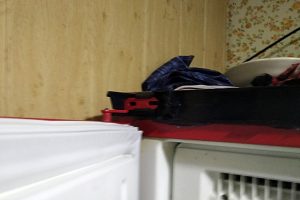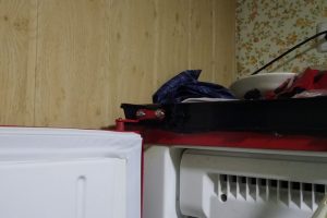 Единственная, к сожалению, нашедшаяся фотография, показывающая, как стоял холодильник раньше. Сделана на ранней стадии проводимого в кухне ремонта – после установки окна на веранду.