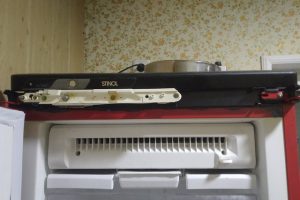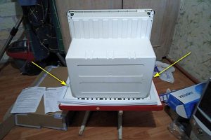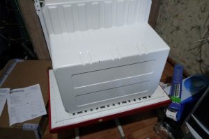 Прежде всего, установил на место металлические планки между секциями холодильника.