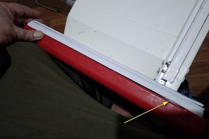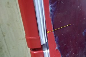 Юбка профиля вошла между панелью и металлическим корпусом двери.