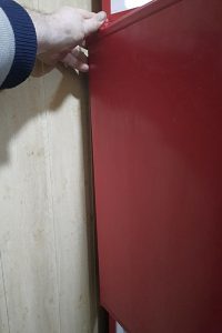 Теперь нужно уложить юбку профиля в зазор между панелью и металлической дверью по всей длине периметра.