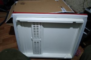 Готовится к навешиванию нижняя дверь, холодильной камеры.