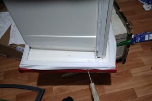 Это пока была самая легкая часть задачи. Впереди более сложные операции, уже связанные с полным снятием дверей холодильника.