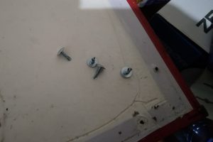 Осталось вкрутить на место саморезы, соединяющие дверь с коробом. При этом, как уже говорилось, три самореза были заменены на более толстые.