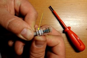 А что делать, если специального обжимного инструмента нет, а установить коннектор требуется срочно, как говорится, «здесь и сейчас»? На этот случай можно воспользоваться «народной» технологией с использованием отвертки.