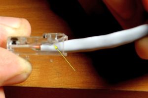 - Даже качественный LAN-кабель может выйти из строя – из-за случайного повреждения или банального износа контактной группы коннектора. Другая нередкая причина – облом фиксатора на корпусе коннектора. Мелочь, а из-за нее коннектор плохо удерживается в гнезде роутера, сетевой платы и т.п. Значит, лучше заменить его на новый.