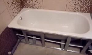 ![]() | После того как клей и затирка облицовки полностью высохнет, устанавливаются и подсоединяются к водяным и канализационным магистралям все сантехнические аксессуары. Первой занимает свое место ванна, так как над ней еще предстоит поработать, закрыв неприглядное пространство снизу. Эта работа также начинается с разметки. На поверхности пола, под внешним краем ванны, отбивается линия, по которой монтируется направляющий профиль. Затем к противоположным стенам фиксируются вертикальные стойки, которые в нижней части создаваемого каркаса, устанавливаются в металлический профиль. |