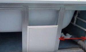 ![]() | В данном варианте в обшивке ванны предусмотрено ревизионное окно для контроля за сифоном. Если планируется обустроить такой проем, то его необходимо предусмотреть на этапе создания каркаса. |