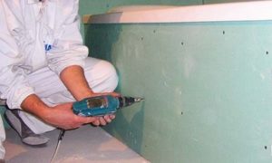 ![]() | Готовый каркас обшивается влагостойким гипсокартоном, который крепится на профилях с помощью саморезов по металлу. После чего поверхность обшивки покрывается грунтовкой и просушивается. |