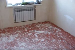 Стандартная упаковка засыпки – мешки вместимостью 40 литров. Расчет необходимого количества ведется от площади пола и от толщины предполагаемой выравнивающей засыпки. Толщина не может быть менее 20 (а лучше – 30) мм. Нежелательно делать ее и более 60, максимум – 80 мм. Если на базовом полу имеется значительный перекос уровня от горизонтали, то это также принимается в расчет.