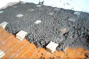 Если же выбран самовыравнивающийся наливной вариант, то раствор замешивается в соответствии с инструкциями, размещенными на упаковке. Смесь разливается по поверхности своеобразными лужами. Затем распределяется по поверхности с помощью широкого шпателя или ракли. И в обязательном порядке прокатывается игольчатым валиком. Эта операция помогает избавить раствор от задержавшихся в нем пузырьков воздуха.