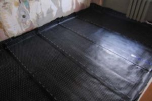 Материал настилается на деревянную поверхность с заходом на стены на 150÷200 мм, где ее необходимо временно закрепить строительным скотчем, чтобы она не мешала проведению работ. Листы пленки укладываются внахлест и склеиваются между собой влагостойким скотчем.