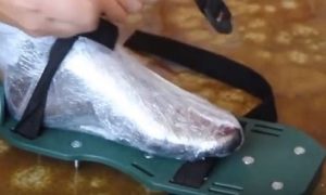 - Пищевая стрейч-пленка. Этот материал некоторые строители наматывают на одежду (рукава, штанины) или обувь для защиты от эпоксидных смесей, которые после застывания отмыть или отчистить не получится.