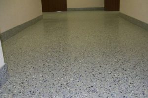 - Однотонные полы с вкраплениями мелких и средних по размеру фрагментов разных материалов (чипсы, флоки и т.п.)