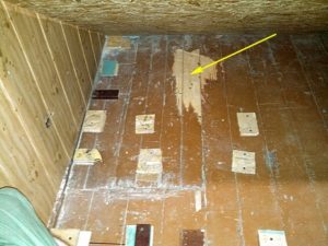 Естественно, этот слой нам сейчас абсолютно не нужен – необходимо добраться до основного дощатого покрытия.