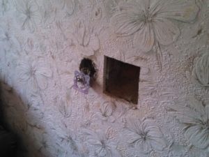 С другой стороны стены картина не столь красивая – выворотило немалый кусок штукатурки. Не страшно – это все легко заделывается.