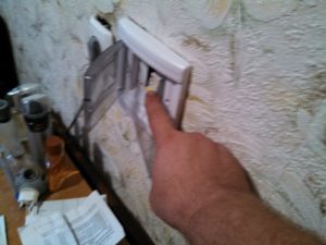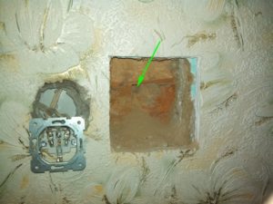 Стена в соседней комнате ранее выравнивалась гипсокартоном, то есть вырезать аккуратное окошко под коробку не составило труда. Затем перфоратором и вручную был выбран толстый слой глиняной штукатурки – получилась ниша, в которую коробка становится, как влитая.