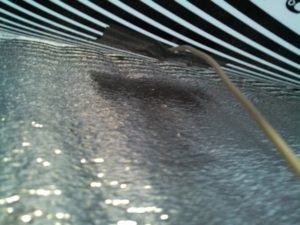 Старое ковролиновое покрытие было снято, а под ним обнаружился тонкий слой тончайшей пыли черного цвета – это все, что осталось от каучуковой основы. На участках с максимальной динамической нагрузкой эта подложка просто истёрлась до самого «ковра».