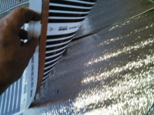 Датчик необходимо предварительно уложить на место, так как требуется наметить границы окошка в пенополиэтиленовой фольгированной подложке.