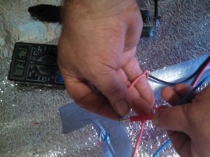 Вначале вытащил «на свет» через проем оба «холодных конца» – это те самые провода, которые только что коммутировались с пленочными нагревательными элементами.