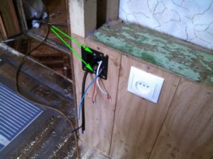 После этого протягивается кабель – использовался двухжильный медный ПВС 2×2,5.