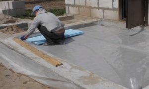 После укладки плит пенополистирола производится подготовка к заливке стяжки. Но здесь уже добавить особо нечего – каких-то значимых особенностей не имеется.