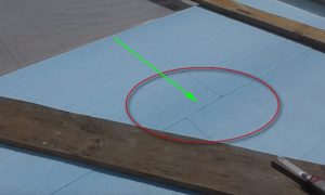 Далее, поверх гидроизоляции укладываются плиты утеплителя требуемой толщины (поз. 4). Если требуется двухслойная укладка, то швы между плитами верхнего слоя не должны совпасть со швами нижнего. То есть укладка ведется вразбежку, по принципу кирпичной кладки.