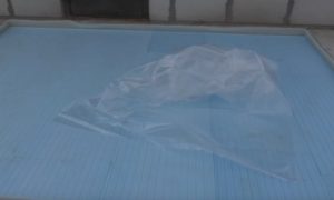 Поверх утеплителя вновь выкладывается слой гидроизоляции (поз. 5). Она в данном случае носит, скорее, технологический характер. То есть обеспечивает надежное удержание раствора при заливке стяжки, чтобы вода не просочилась вниз между плитами, и тем самым не нарушилось нормальное водоцементное соотношение, необходимое для качественного созревания бетона. В качестве гидроизоляции вполне будет достаточно использовать плотную (не менее 200 мкм) полиэтиленовую пленку. Ее края заводятся на стены, так, чтобы образовалась своеобразная «чаша» с бортиками, выше планируемой толщины стяжки.
