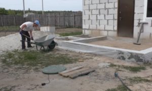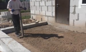 Для примера — посмотрим, как хозяин строящегося дома утепляет пенополистиролом пол по грунту в будущей пристройке.