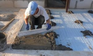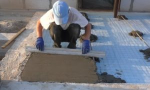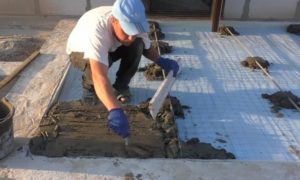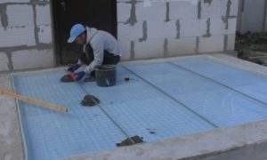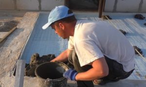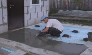 После этого раствор вываливается на место заливки «теплой» стяжки, распределяется, и одновременно готовится очередной замес.