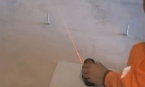 - Отремонтированную, очищенную и загрунтованную поверхность основания необходимо разметить с помощью лазерного уровня. Определяется «нулевая линия» будущего уровня пола.