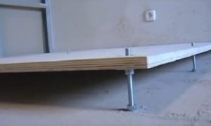И в завершение публикации – видеосюжет, в котором показан способ выравнивания пола фанерными листами с использованием пластиковых регулируемых винтовых стоек