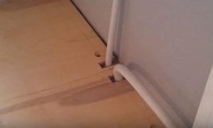 - В местах прохождения труб отопления делаются замеры расстояния их от стены, и в листе выпиливаются соответствующие окна. При этом необходимо учитывать, что между фанерой и металлом труб должен оставаться зазор 5÷7 мм.