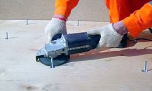 - Излишки шпилек, выступающие выше уровня лаги, срезаются шлифовальной машинкой.