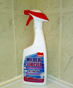Для использования этого препарата для удаления плесени необходимо две его чайные ложки смешать с 0,5 литрами теплой воды. Этот состав разбрызгивается сверху пораженных участков, и смывать этот раствор не требуется. Но после проведения обработки помещение ванной комнаты не рекомендуется посещать в течение примерно 12 часов. Поэтому лучше всего такое мероприятие производить перед отъездом из дома на некоторое время.