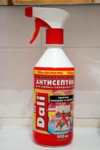 Нашатырный спирт можно приобрести в любой аптеке, а для его применения для хозяйственных нужд его разводят в консистенции 1:1 с водой. Этот раствор и наносится на зараженную поверхность с помощью губки или пульверизатора и оставляется для воздействия на несколько часов. После этого обработанные области обильно промываются водой. Выбирая это средство, необходимо помнить, что оно имеет крайне неприятный резкий запах, и оттого работать с ним – очень непросто.