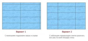— плитка монтируется по-разному, в одних случаях ее укладывают от пола, в других, начиная от края ванны;