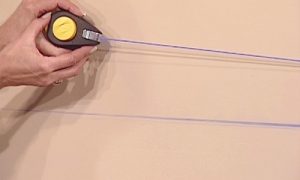 Длинные линии по вертикали и горизонтали лучше всего проводить малярным разметочным шнуром, с помощью которого линия будет отбита сразу на всю длину. При этом линии следует контролировать с помощью строительного уровня.