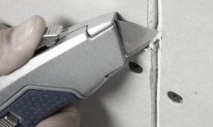 Если при монтаже гипсокартонных листов образовались стыки, на которых отсутствуют фаски, необходимо произвести их расшивку. Это необходимо для того, чтобы шпаклевка заполнила шов и связала листы между собой.
