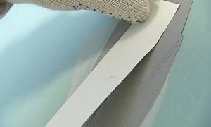 Если для этой цели используется сетка-серпянка, то ее часто наклеивают до нанесения шпаклевки, так как раствор легко заполнит шов через решетчатым материалом.