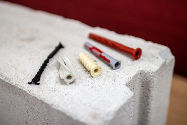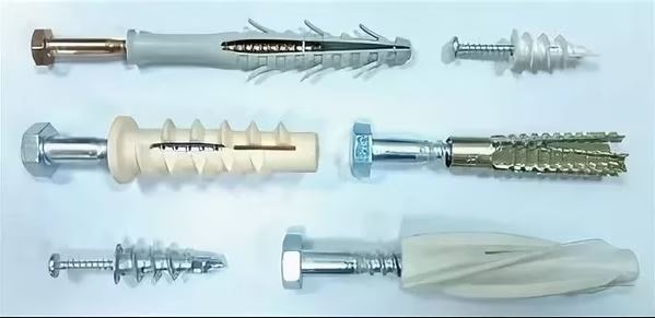 - Пластиковые дюбели «под винт» (распорные дюбели): это самый частый виновник мифа. В кирпиче они расклиниваются и держат за счет трения. Газобетон же гораздо менее плотный и прочный. При закручивании винта дюбель не расклинивается, а просто разрывает пористый материал изнутри, как надувной шарик. В результате крепеж вываливается, а у человека формируется стойкое убеждение: «ничего не держится».