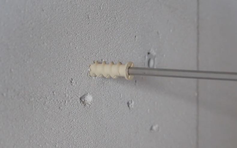 - Вставляется металлическая шпилька, арматура или резьбовая штанга.