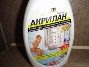 Недостатком готовых моющих средств для акриловых изделий является их высокая цена, а также то, что их применение должно быть строго дозировано. Необходимо отметить, что отечественные моющие растворы имеют более доступную цену, хотя часто обладают совершенно аналогичным с импортными составами действием.
