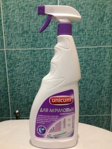 - Кроме специально предназначенных составов для очистки акриловых поверхностей, подходят и некоторые универсальные растворы, но они не должны содержать агрессивных ингредиентов, таких, как некоторые виды кислот, ацетон, спирт и аммиак.
