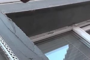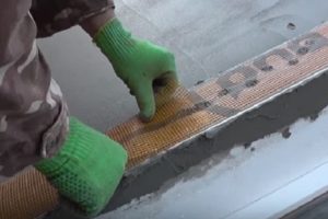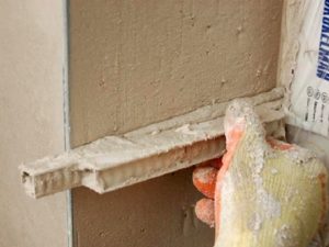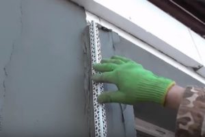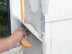 Углы откосов необходимо укрепить металлическими уголками, которые фиксируются на цементный мелкодисперсный раствор (можно использовать плиточный клей для наружных работ).