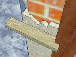 - Монтаж гипсокартонных деталей на закрепленной на откосе деревянной обрешетке. Но этот вариант возможен, если откос имеет достаточно большую ширину.
