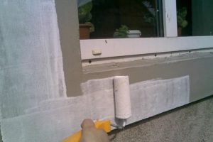 - Далее, откосы необходимо обязательно обработать грунтовочным антисептическим составом и дождаться его просыхания.