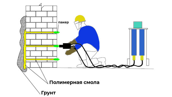 Заключается он в пробитии сквозных отверстий в фундаменте и закачке под высоким давлением специальных полимерных смол. По задумке разработчиков, смола растечется по внешней части фундамента, застынет и защитит конструкцию от попадания воды.