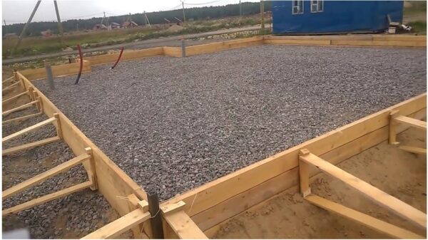 Традиционный подход. Под будущим домом обустраивают дренажную подушку из щебня и песка. Этот этап проводят всегда, независимо от выбранного метода защиты фундамента от влаги. А вот далее уже возможны разные варианты.