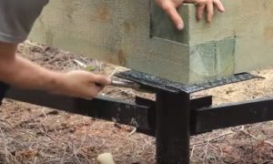 - В том случае, когда металлический ростверк поднят над поверхностью грунта более чем на 800 мм, требуется дополнительная нижняя обвязка, которую монтируют на высоте 300÷500 мм от поверхности почвы. Данное укрепление производится профильной трубой, имеющей толщину стенок не менее 3 мм, которая приваривается с внешней стороны конструкции или враспор между опорами.
