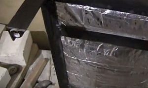 - Дверца камеры должна иметь такую же толщину, что и стены, а также дополнительно оснащена слоем термоизоляции, например, из той же минеральной ваты. Кроме того, на дверцу устанавливается надежный запор, который будет плотно прижимать ее к передней части нагревательной камеры. В качестве запора используются задвижки, закрутки, притягивающие крюки и другие подобные приспособления.